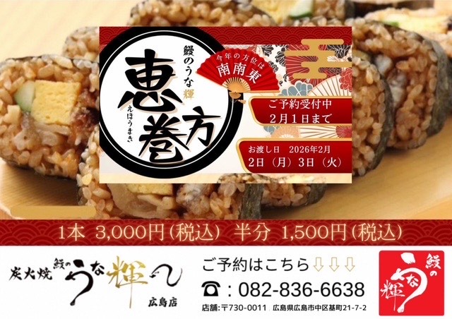 今年の恵方巻は広島城三の丸「炭火焼 鰻のうな輝 広島店」で 2026.01.12 ─2026.01.12 MORE 【終了】祝・新二十歳!しろうニャと広島城天守を背景に写真を撮ろう! 2026.01.12 ─2026.01.12 MORE 広島城三の丸 年末年始のご案内 2025.12.28 ─2026.01.03 MORE 【終了】閉城前の天守に入れる“最後”のコスプレイベント!「城コス!広島きゃっする」 2025.12.07 ─2025.12.07 MORE 【終了】お城でクリスマス in 広島城三の丸 2025.12.05 ─2025.12.25 MORE 【終了】初開催!日本酒片手に「広島城三の丸 呑める古本まつり」 2025.11.21 ─2025.11.24 MORE 【終了】広島城三の丸で楽しむ秋の三連休!こだわりの逸品が集う「暮らし彩り市」を開催 MORE お堀を巡る「広島城遊覧船」10月25日(土)運航開始! MORE